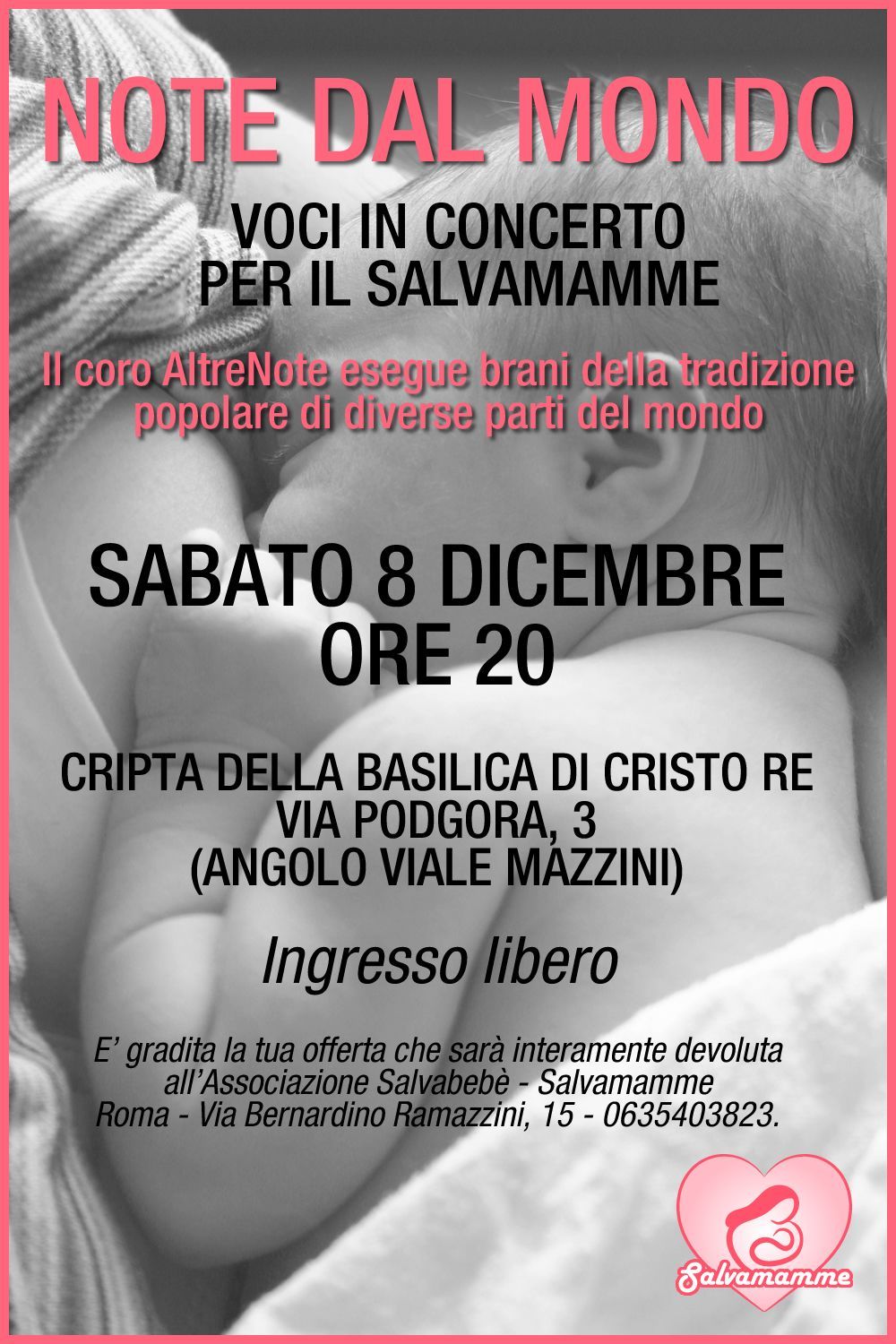 - 4 marzo: Con la Corale Arcobaleno, Cripta della Basilica di cristo Re, Roma Concerto di beneficenza per l’Associazione Salvamamme